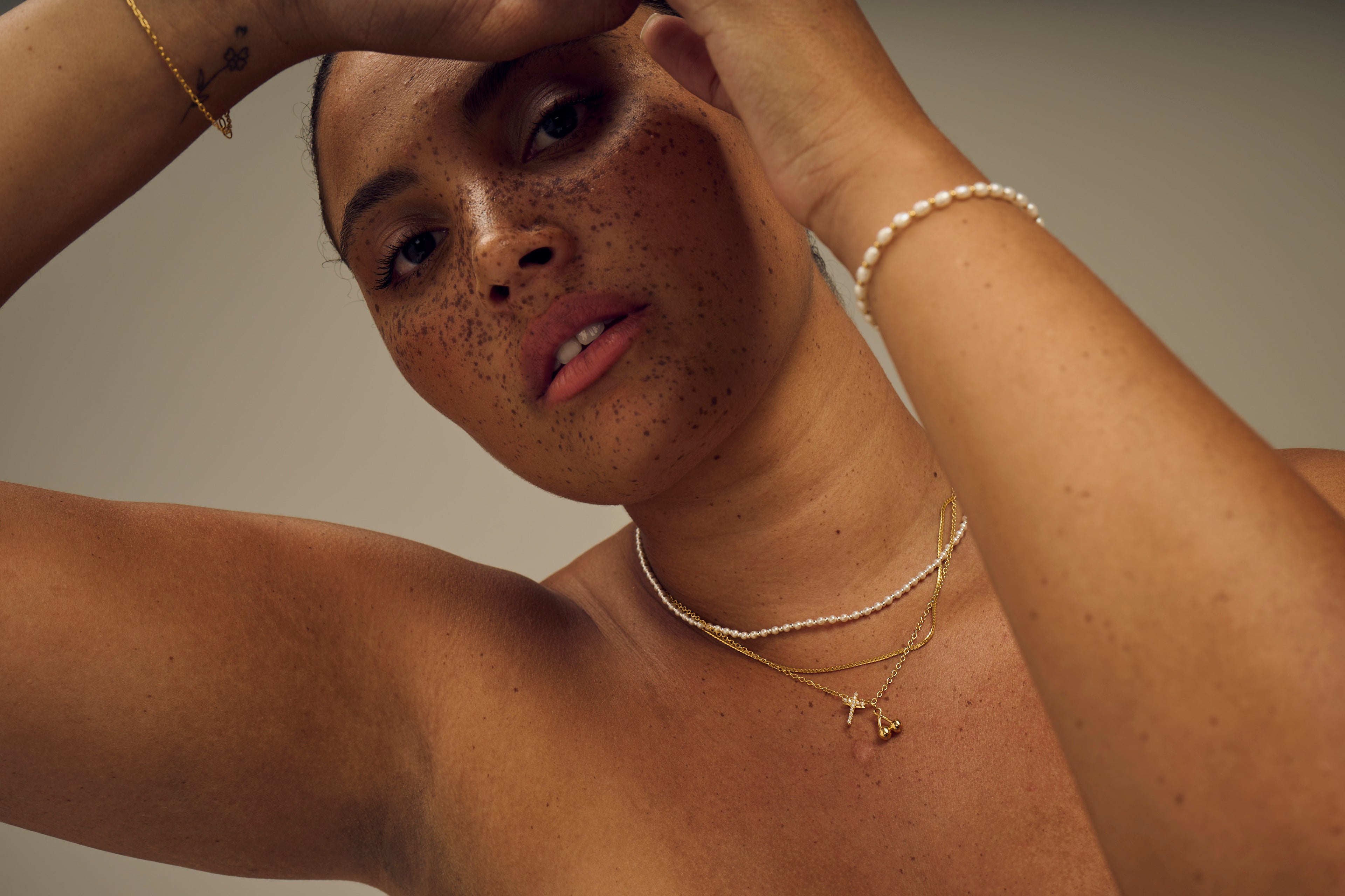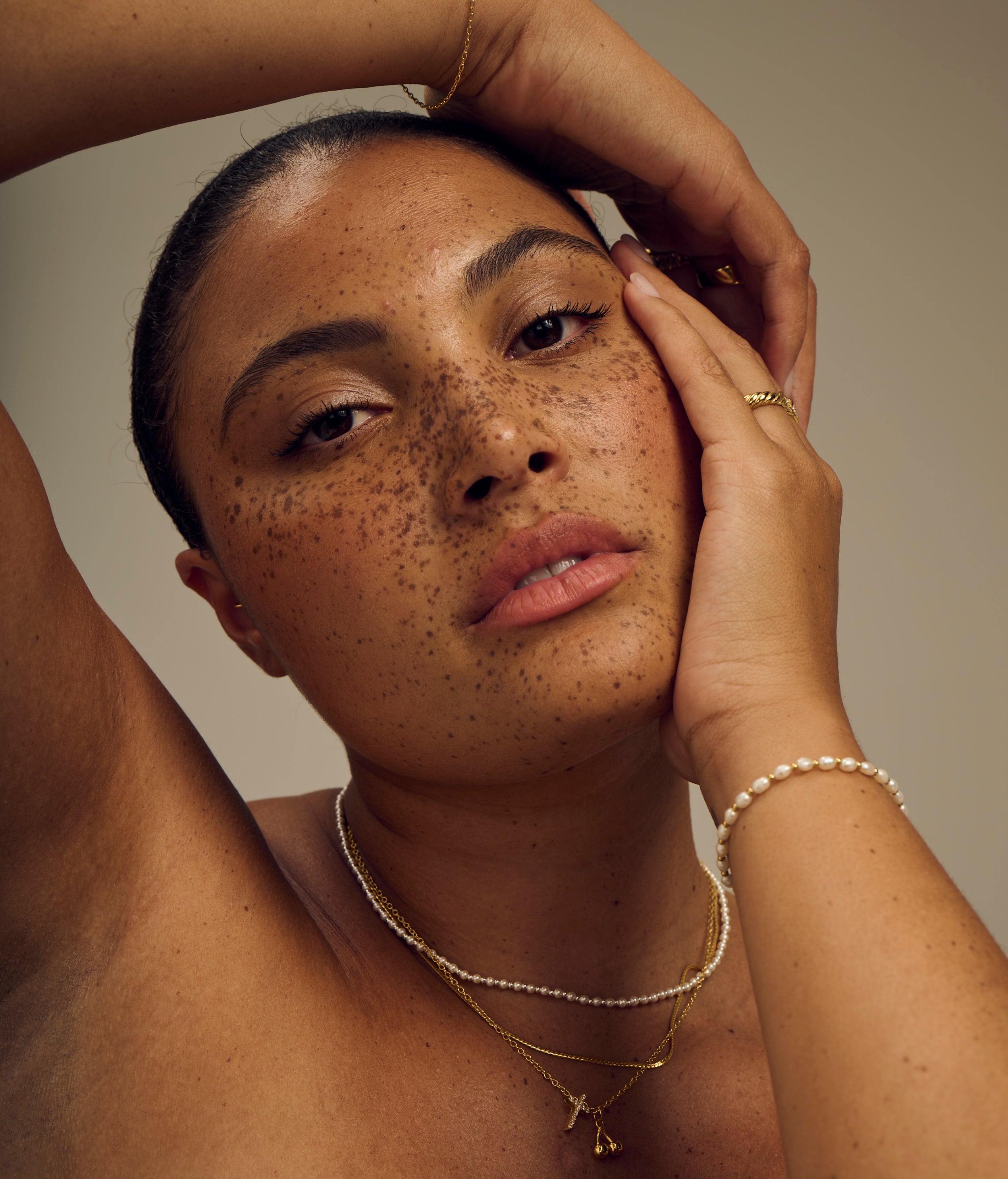 This hybrid chain and freshwater pearl design is crafted from 100% 925 recycled sterling silver and plated in 14k gold. The perfect bracelet for everyday wear- take it from day to night, summer to winter.