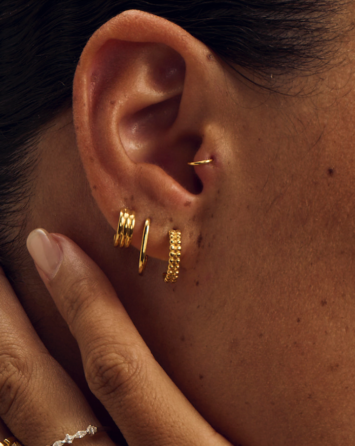 Fun texture meets everyday shine. The Samara Studs feature a bubbled, beaded design in a half-hoop silhouette, finished in radiant 14k gold plating. Lightweight and full of personality, these studs are perfect for adding dimension to your stack — or wearing solo for subtle impact.