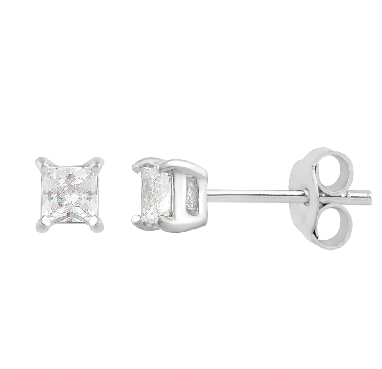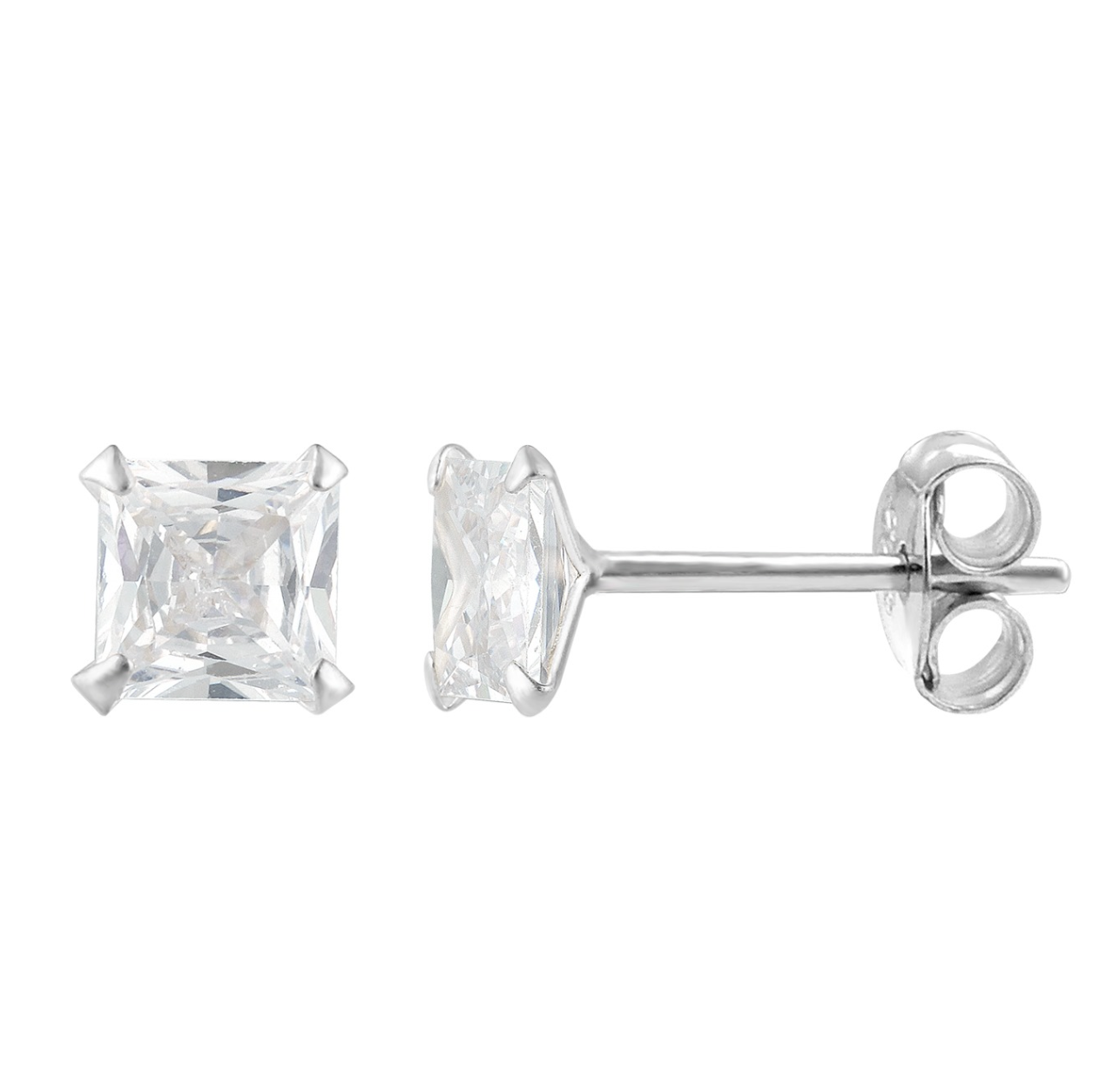 SMALL SQUARE DIAMANTÉ STUD - Sterling Silver