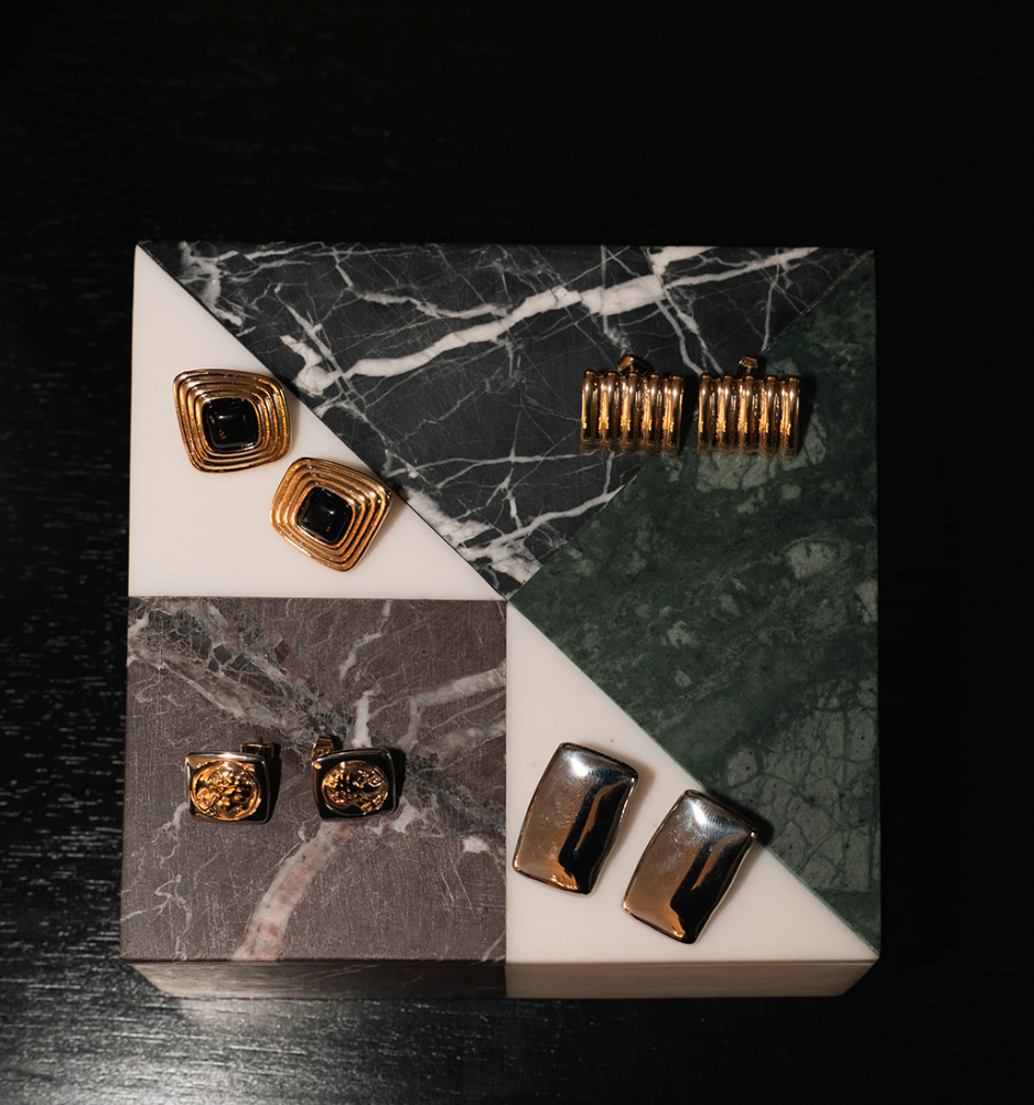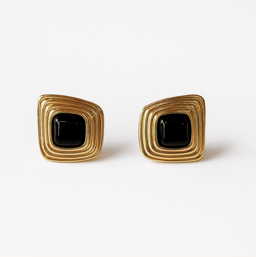 Crafted from high-polish stainless steel, the JUNO earrings are a bold nod to retro glam. Their unique square silhouette and layered ridges frame a glossy black enamel centre, creating a striking contrast that catches the light from every angle. Lightweight yet statement-making, they’re perfect for dressing up a sleek ponytail or elevating your everyday basics.