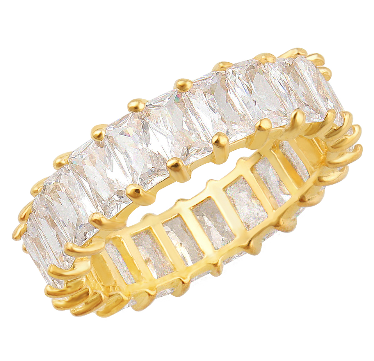 Make a statement with our Natalie Ring! Made from 100% Recycled Sterling Silver and plated in 14k Gold with rectangular cubic zirconia hand-set in a basket of open prongs to enhance the sparkle. Wear alone or pair with any of our rings to create the ultimate stack - the Natalie Ring is a piece you will love for a lifetime!