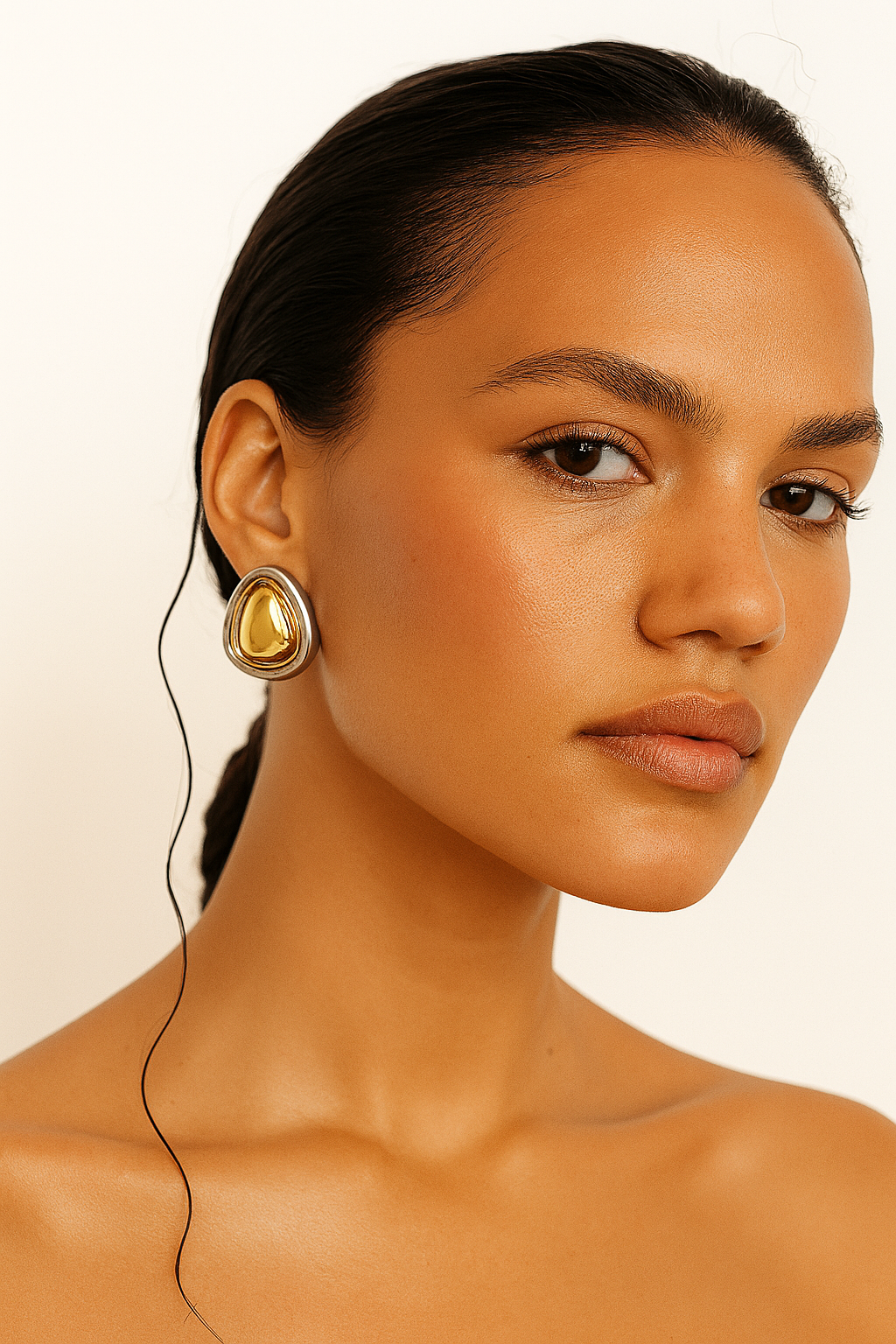 Bold. Sculptural. Unapologetically statement-making. The Aria Earrings feature a fluid teardrop shape with a high-polish finish that reflects light from every angle. Crafted from stainless steel-filled metal, they’re tarnish-resistant, waterproof, and designed to make an impact — from day to night.
