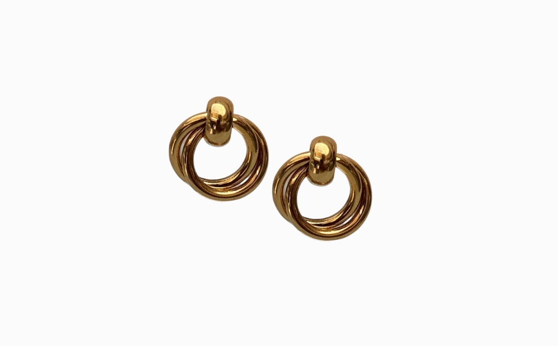 The DOUBLE LOOP EARRINGS are your new go-to for effortless elegance. These unique gold hoops feature an innovative double-loop design that creates beautiful movement and dimension, catching the light with every turn. Bold enough to make a statement, yet refined enough for everyday wear.