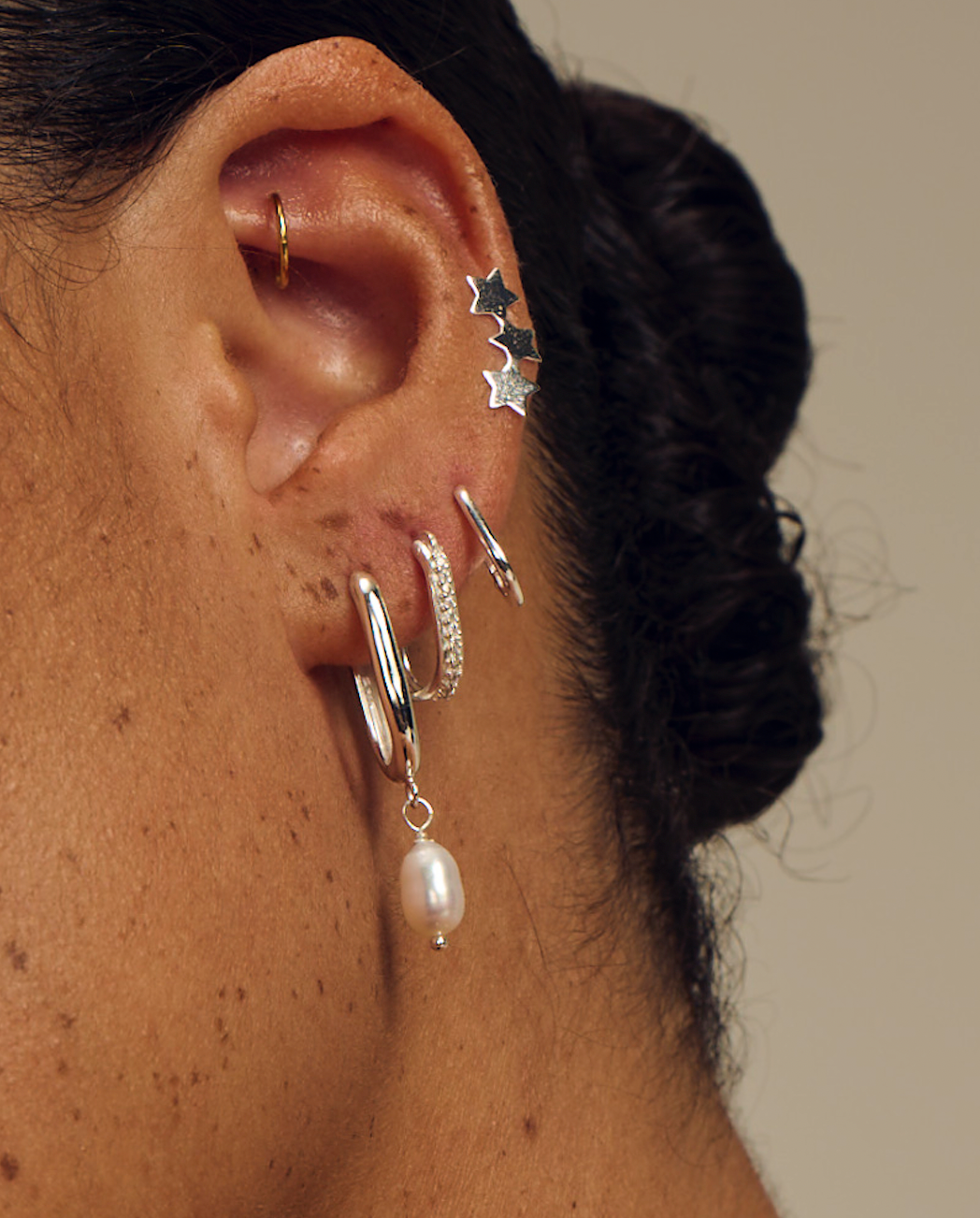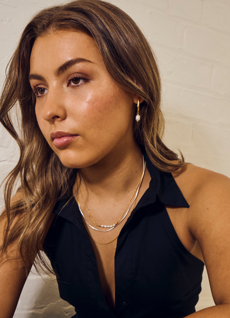 Our Riley Pearl Hoops are a pair of 14k Gold Plated small and dainty chain hoop earrings featuring a hanging pearl charm. Perfect for everyday wear or a special occasion when you need a simple and classy detail earring. Pair these with your favourite Luv Sky Studs and create the ultimate ear stack.