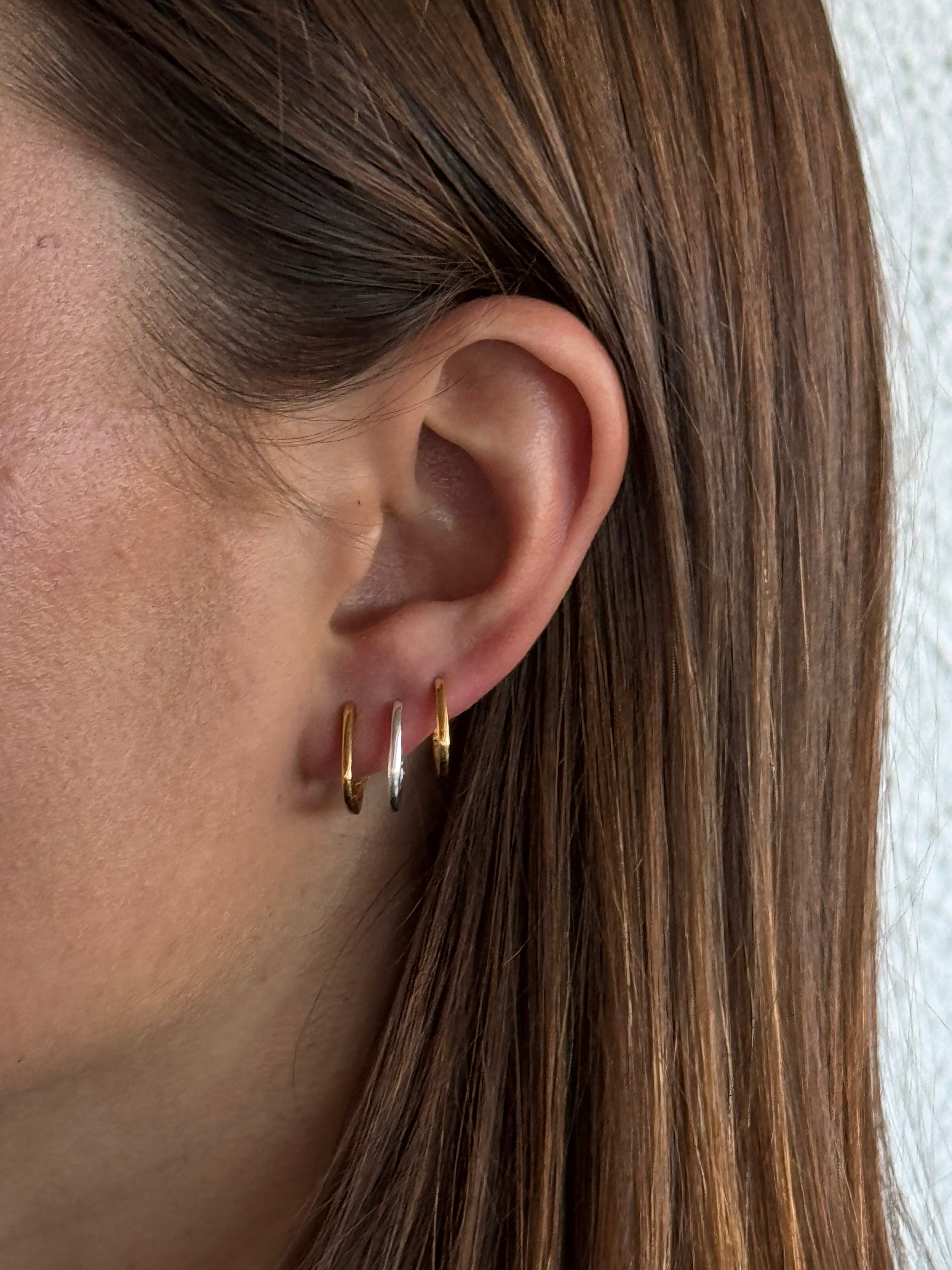 With their subtle rectangular design, the Lilly Huggies are effortlessly simple, thin, and perfect for layering or wearing solo. A minimalist must-have for any look.