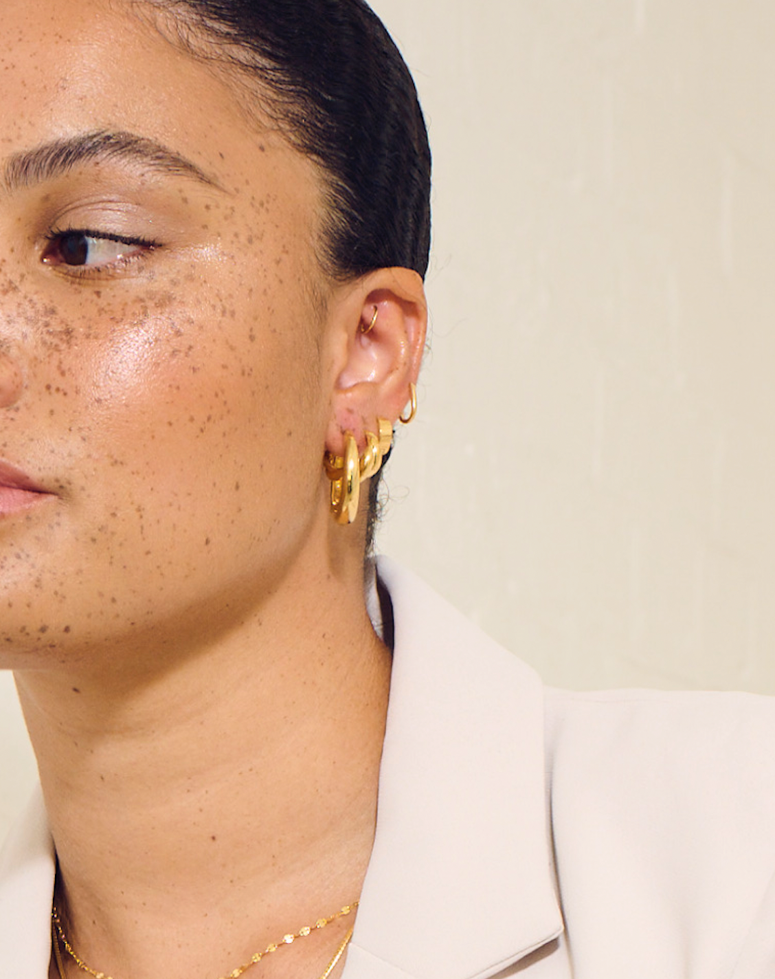 Sleek. Subtle. Elevated. The Lilly Huggies feature a unique elongated oval shape with a minimalist finish, crafted in high-shine 14k gold plating. Lightweight and versatile, they’re the perfect blend of modern edge and timeless simplicity — ideal for everyday wear or layered ear stacks.