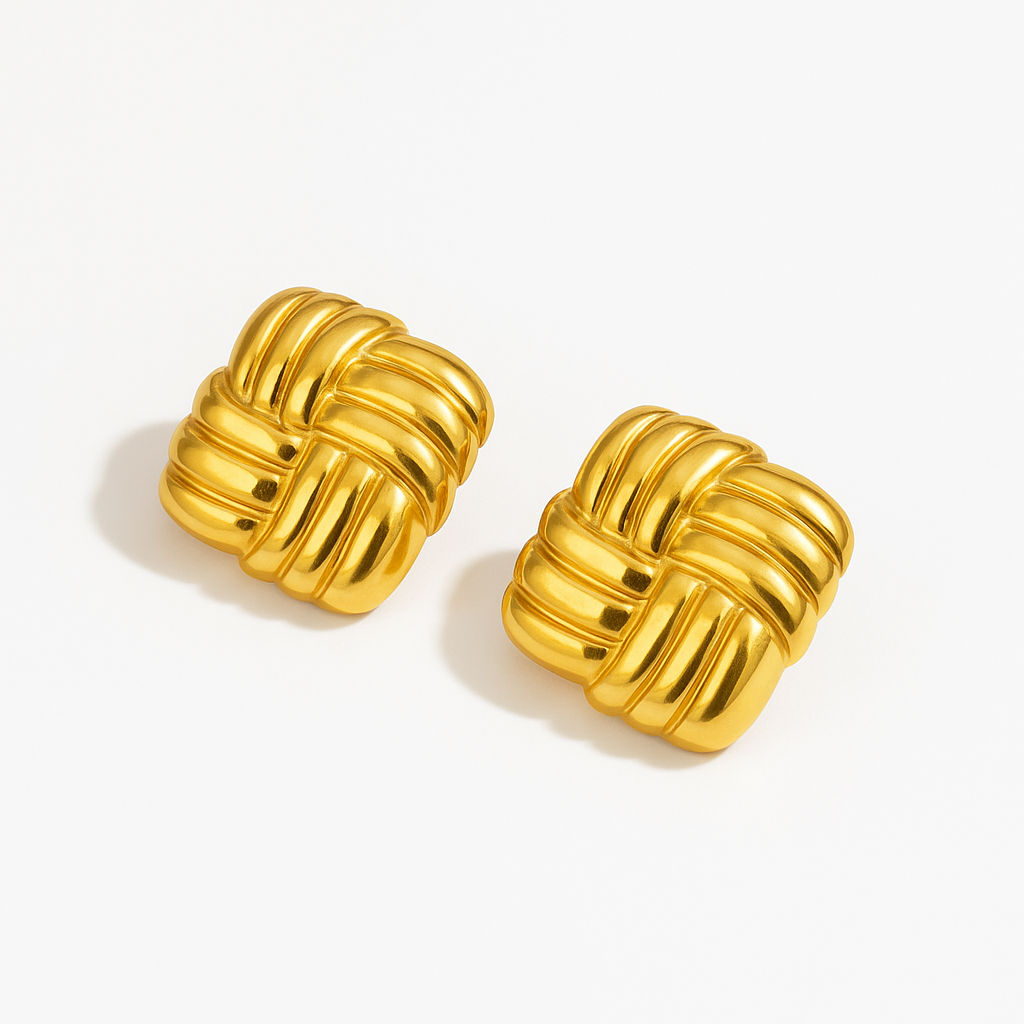WOVEN SQUARE EARRINGS LUVERS - Gold