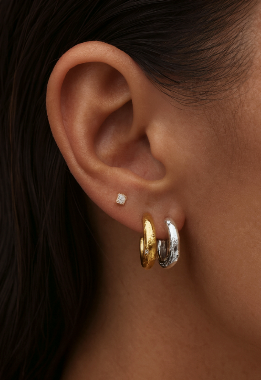 Elevate your style with these sparkling huggies that combine sustainable luxury with eye-catching crystal details, perfect for both day and evening wear.