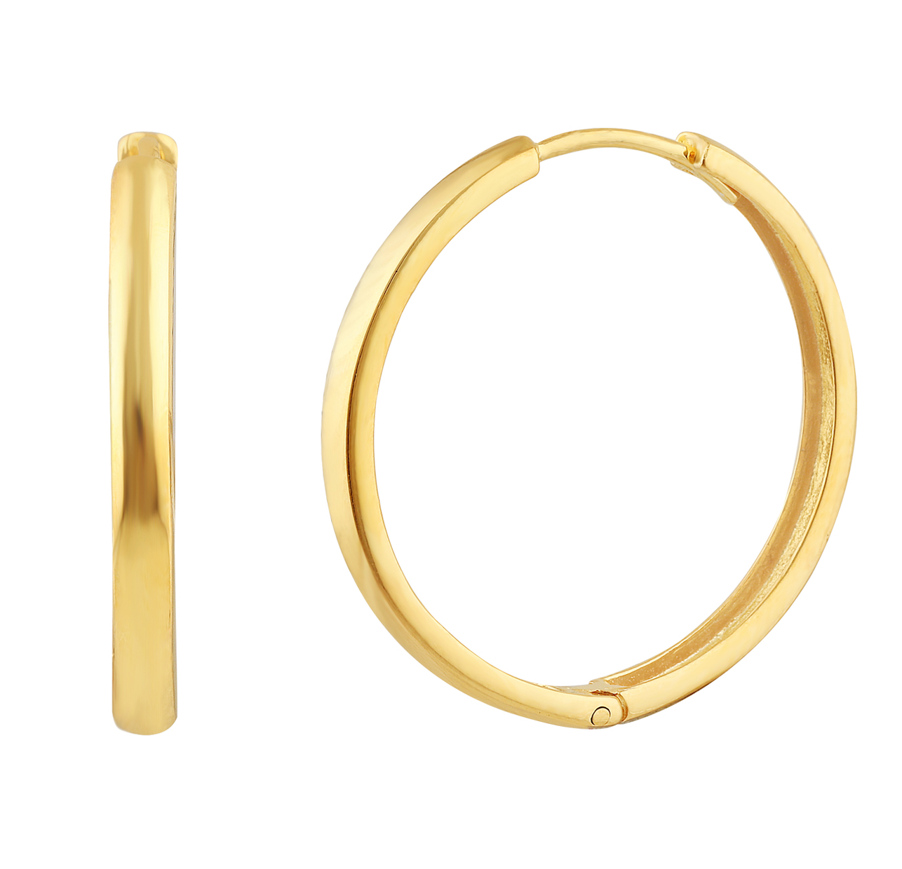 Our Lennon Hoops have that modern, chic, classic thing that you like! This pair of hoops will never go out of style, with their timeless and minimalist silhouette they are a staple for every jewellery collection! Made from 100% Recycled Sterling Silver and plated in 14k Gold, secured with a huggie closure. Pair with any of our huggies or studs for an elevated look!