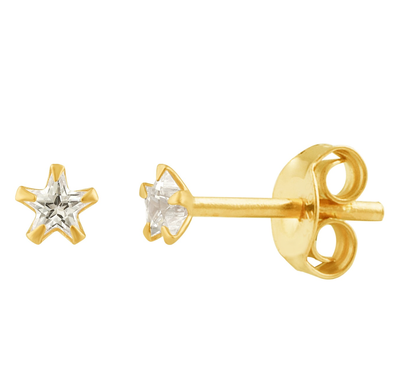 A mini star-shaped diamanté perfect for everyday wear and ear stacking. Crafted from 100% recycled sterling silver and plated in 14k gold, this celestial stud is finished with a classic butterfly back for secure, easy wear.