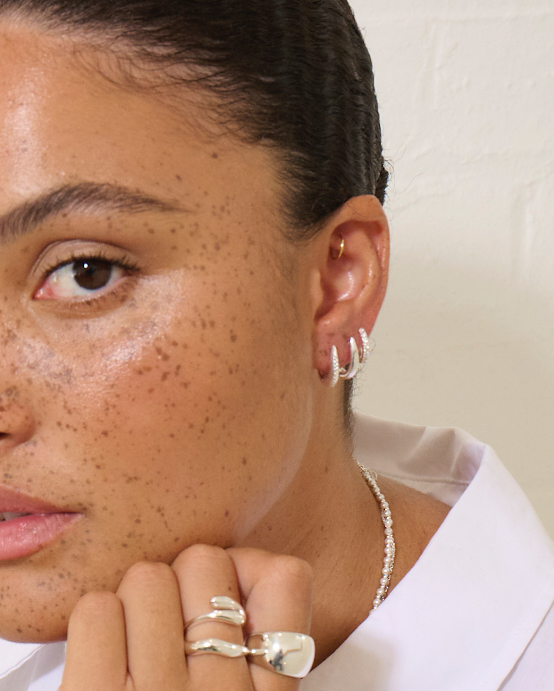Sleek. Sculptural. Made to move with you. The Portofino Huggies are your polished essential — a refined teardrop silhouette with high-shine curves that catch the light from every angle. Bold enough to wear solo, subtle enough to layer.