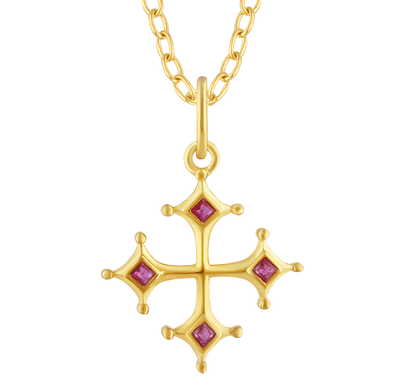 The Ruby Cross Charm adds a pop of colour and meaning to your stack — featuring deep ruby-toned crystals set in a gold cross silhouette. Whether you're drawn to its spiritual energy or just love the rich jewel tones, this charm brings the drama (in the best way).